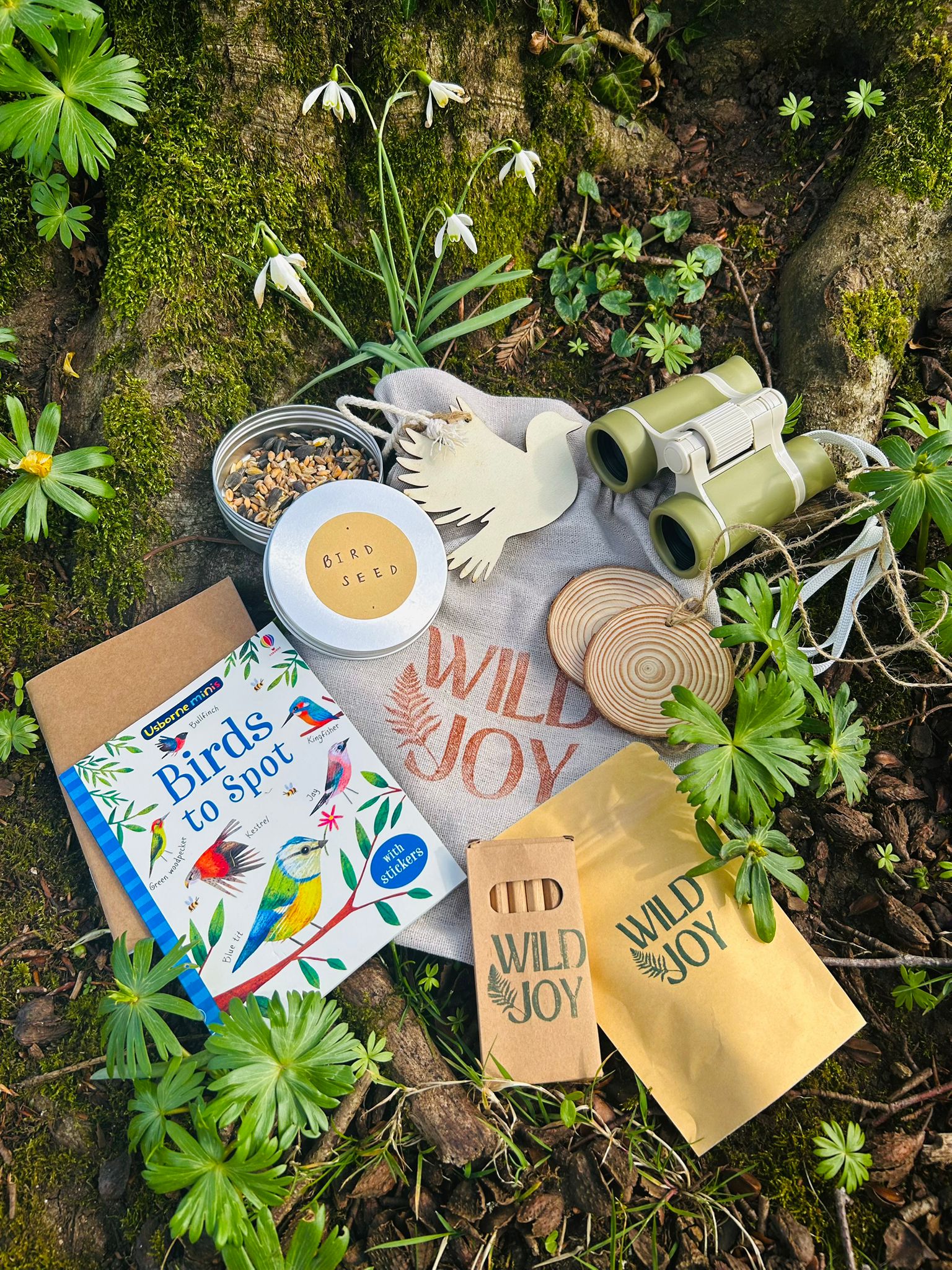 There is a variety of educational and fun items in the bird pack, including kids binoculars that are designed to be lightweight and easy for small hands to use. There is also an activity to make a clay feeder and two wooden hanging bird feeders, plus a bird spotting book, and a journal (with pencils) for jotting down observations making it the perfect kit for bird lovers. The pack comes in a canvas bag with wooden bird tag and includes: